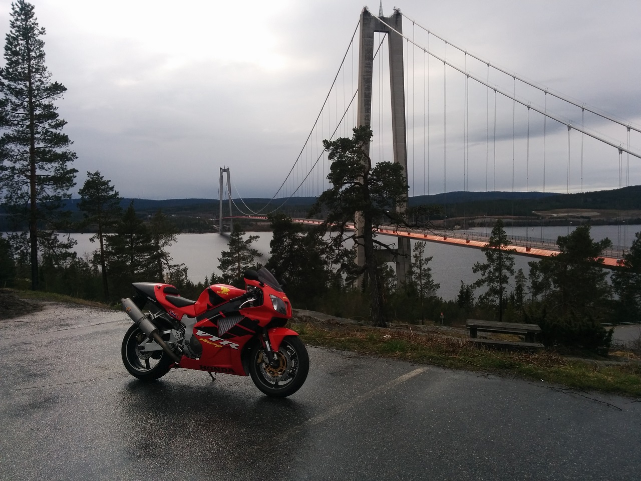 Man kan också säga att sadeln på en VTR1000 SP-1 är INTE gjord för långfärd. Det gör mycket ont efter några timmar och man längtar tills man får stanna och kliva av. En annan miss av mig var att köra med min Arai Tour X3 med skärm. På en superbike sitter man så frammåtlutad så att skärmen täcker synfältet. Det innebär att man får sitta och hålla huvudet bakåt vilket resulterar i trött och öm nacke. Så ny hjälm måste införskaffas. Tills vidare dammar jag av min gamla Arai Adamo från CBR1000 tiden. Tur att Arai håller så hög kvalitet så den sitter perfekt än i dag.